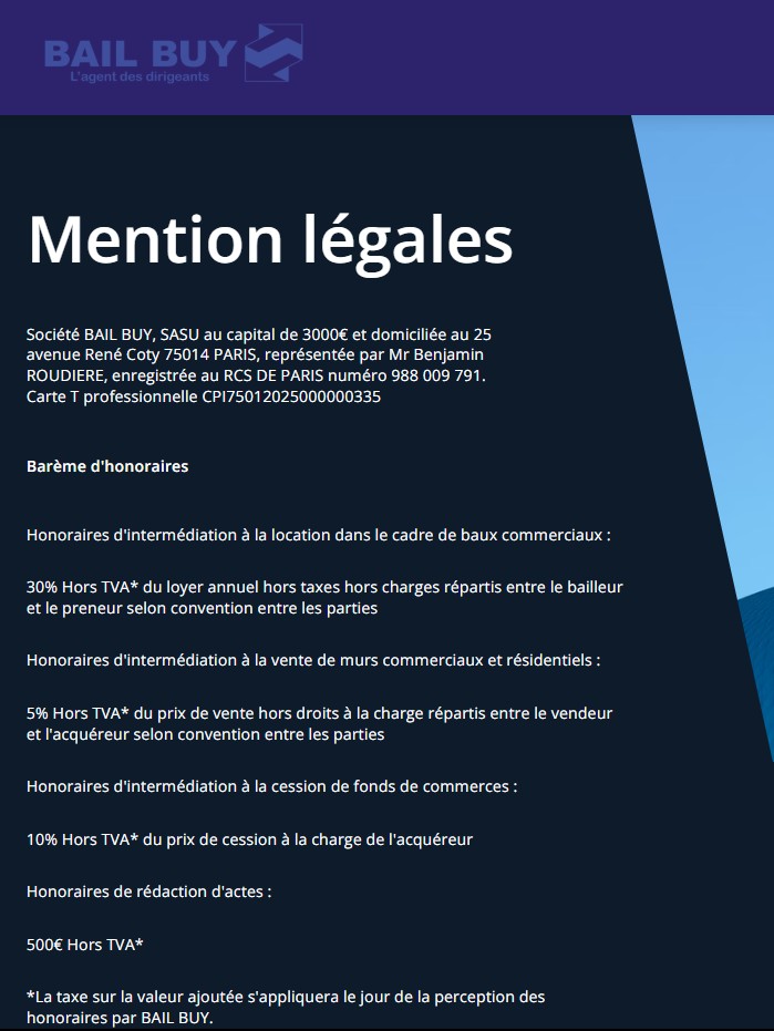Honoraires / Location: 15 % HT du loyer annuel HT HC À la charge du preneur
